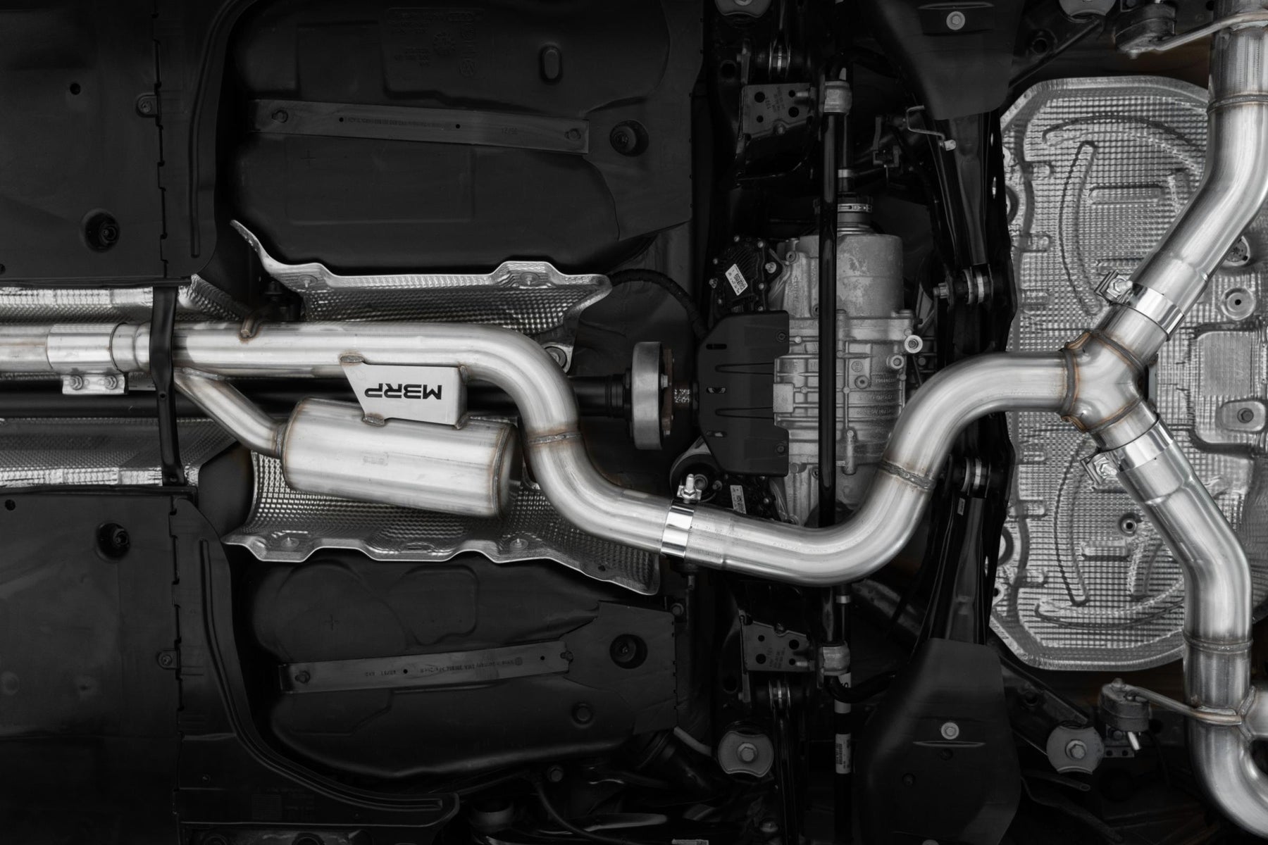 Sound and Appearance: The S4612304 exhaust system enhances the tone of your vehicle, utilizing Helmholtz technology it achieves an aggressive growl at acceleration while also reducing high notes. This system also completes the sporty look of your Golf R MK8 with mirror polished exhaust tips.
