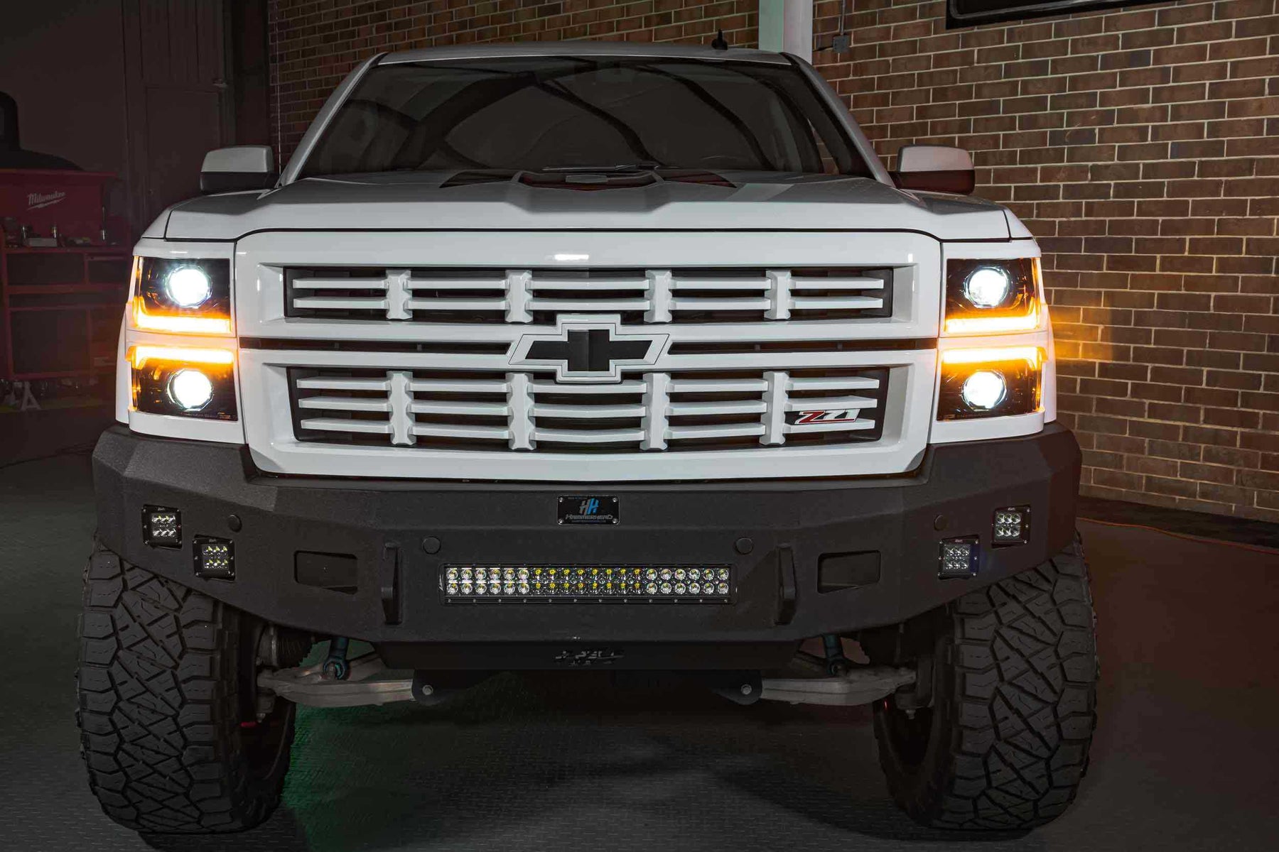 Lucky Day: In 2018, Morimoto launched the XB LED headlight lineup and has since launched a few dozen new models: exciting pockets of enthusiastic car & truck owners along the way. On the other hand, with each new launch for every other popular application, it would seem that owners of the 14-15 Silverado grew more and more bitter with the lack of news-of or availability-on when their time would come. Thankfully with the release of Morimoto's XB LED headlights specifically for these trucks, we can all now rest, safe from the crowds of 14-15 Silverado owners on their pitchfork yielding pilgrimage to our front door wondering when their time will come. Rejoice! The day has come. FACE LIFT: The design of the Morimoto XB LED heads for the 14-15 Silverado was inspired by look of the 16-18 OEM Silverado headlights with the LED Daytime running light and honestly if you didn't know any better, these things could pass for OEM but it gets a bit better. The LED daytime running light is powered by Osram 5000K LEDs and is insanely bright, easily visible during the day! That daytime running light will also dim down when the parking lights or low beams are on for compliance reasons. Just below that: The trademark sequential turn signal that we've grown to love on so many of the other models in the Morimoto lineup. If you're not a fan of the sequential effect, no problem. You can run the blinker in standard mode too. All wrapped upside a gloss black housing, these things would be a killer aesthetic upgrade for any truck! . But the real beauty here is that it's not ALLLLL about looks. These things are quite functional too.Bi-LED: The Morimoto XB LED headlights for the 14-15 Silverado come standard with two high-output LED projectors per headlight, with the bottom being Bi-LED. Yes, that's a total of 4x low beams and 2x high beams to illuminate the road ahead. Thanks to their advanced modern optics and a 3in optically clear lens, they're going to perform even better than they look. The full LED low and high beam are an instant upgrade over stock, with a wider, brighter low beam, and a high beam that will penetrate far into the distance with ease. To top it all off, these optics meet & exceed all SAE, DOT standards when aimed properly, which is easy to do with their integrated aiming adjusters. PLUG-N-PLAY: As for wiring: Morimoto's LED headlights are designed to work on your Silverado without any modifications. They are plug n play on trucks that came stock with and without the integrated LED daytime running lights. No error codes! no flickering. No hyper-flashing! no nonsense. WELL-BUILT: Their UV-coated polycarbonate lens will resist the test of time, ensuring your truck's new headlights will look good as new for many years to come. The PPS plastic housing is light-weight and much stronger than comparable alternatives. The die-cast aluminum heat-sinks inside the housings provide more than an adequate amount of cooling for the OEM grade LED chips that produce the light. We get it: If you've got a 14-15 Silverado 1500, your headlight game is weak compared to the OEM setup on the 16-18 trucks, which is why you guys have been asking for these for a long time. The XB's deliver the DRL you demand. The sequential signal you're seeking. The low beam performance you love, and a high beam to hail. These lights come available with optional Unfinished or chrome front trim bezels too. If you want to paint match them to the grille on the front of your Silverado, the Unfinished trim is recommended.