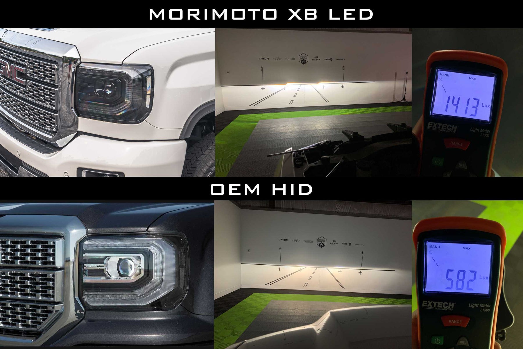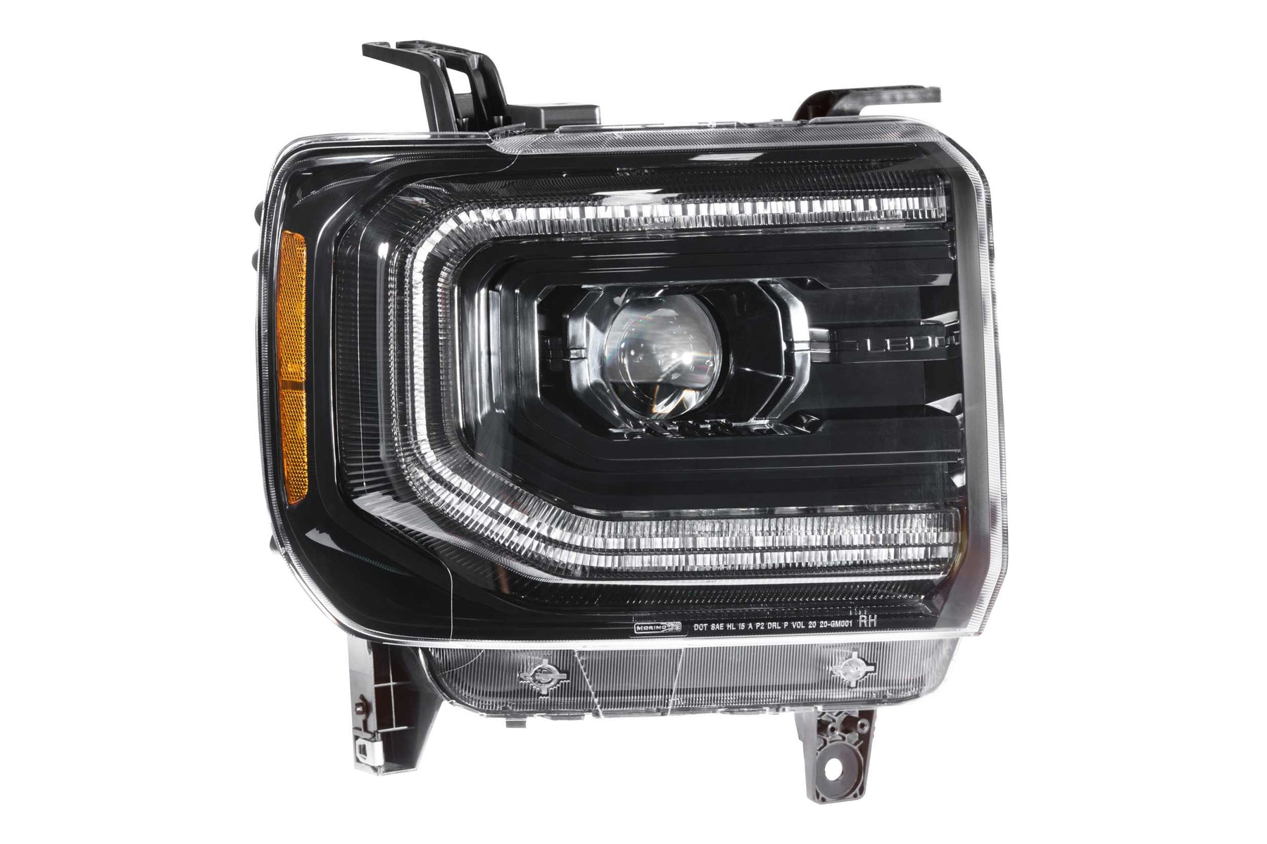 We could be wrong here: but the 2014 Sierra was GM's first truck with an optional LED Daytime running light up front. Super modern for the time, but in a world where new pick-up trucks get a face lift every 2-3 years! By today's standards the design is getting a little old! which is ironic since GMC was still making the HD version of this truck through the 2019 model year. Time for a facelift! SEQUENTIAL LED DRL: The design of the Morimoto XB LED heads for the Sierra was inspired by look of the 16 through 18 Sierra headlights with the full C-shaped LED Daytime running light and honestly! if you didn't know any better, these things could pass for OEM! but it gets a bit better.The LED daytime running light is powered by Osram 5000K LEDs and is insanely bright, easily visible during the day! That daytime running light will also dim down when the parking lights or low beams are on for compliance reasons. Just below that: The trademark sequential turn signal that we've grown to love on so many of the other models in the Morimoto lineup. If you're not a fan of the sequential effect, no problem. You can run the blinker in standard mode too. All wrapped upside a gloss black housing, these things would be a killer aesthetic upgrade for any truck! . But the real beauty here is that it's not ALLLLL about looks. These things are quite functional too. PERFORMANCE: Sure, your truck has projector headlights from the factory! . But take it from us, the projectors found inside the stock housings are bottom of the barrel performance-wise. Even with a set of good LED bulbs or an HID kit, its OK at best. For years, Sierra owners have been doing projector retrofits with higher performance units just because that's the only real way to fix the Achilles heel inside these housings. But: if you don't want to mess with all that, the Morimoto XB LED headlights come standard with a high-output Bi-LED projector. Thanks to their advanced, modern optics and a 3in optically clear lens, they're going to perform even better than they look. The full LED low and high beam are an instant upgrade over stock, with a wider, brighter low beam, and a high beam that will penetrate far into the distance with ease. To top it all off, these optics meet & exceed all SAE, DOT standards when aimed properly, which is easy to do with their integrated aiming adjusters. PLUG-N-PLAY: As for wiring: Morimoto's LED headlights are designed to work on your Sierra without any modifications. They are plug n play on trucks that came stock with and without the integrated LED daytime running lights. No error codes! no flickering. No hyper-flashing! no nonsense. WELL-BUILT: Their UV-coated polycarbonate lens will resist the test of time, ensuring your truck's new headlights will look good as new for many years to come. The PPS plastic housing is light-weight and much stronger than comparable alternatives. The die-cast aluminum heat-sinks inside the housings provide more than an adequate amount of cooling for the OEM grade LED chips that produce the light. Let's face it: in 2019 GMC designers fell off the deep end with the new front end. If you've got a 14-15 Sierra 1500, or a 15-19 Sierra HD and you're looking to maximize the modern appeal of your truck with the last great front-end style GMC produced! there's no better way to do it. They've got the style. They've got the performance. The quality, and of course, they come backed by the best people in the business here.