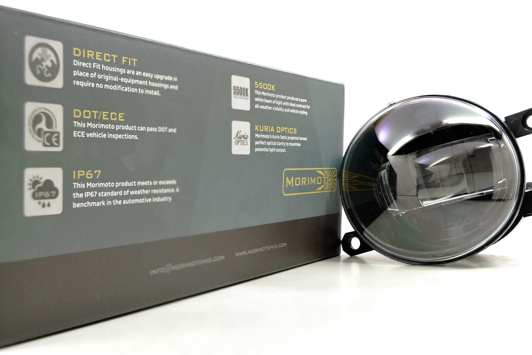 No Substitutes: If you don't have LED powered fog lights, then you're just behind the times! Thankfully the new Morimoto XB LED projector fog lights: Look great. Are well-built. Perform like champs. Have a virtually infinite life span. An unbeatable warranty, And best of all you won't need to sell your soul to afford them! Many of the guys here at the shop use them on their own vehicles, and they're easily one of our most popular product lines. Compatible: With many modern applications from Infiniti, these complete fog light housings will swap directly in place of the original halogen units that they're designed to replace, using all of the stock mounting locations. Their aim can be perfectly dialed in with the integrated height adjusters. Check the compatibility section below for a list of known applications. Plug n Play: Wiring is easy too! The XB LED Fogs are designed to work without any special wiring. They will plug into the factory connectors for the stock fog lights and each assembly includes all necessary connectors, rubber seals, and pigtails for a plug n play install. Powered: By three Nichia 5500K LED's that produce around 1200 raw lumens per side. The projector based optics concentrate a total of 2400 lumens of pure white light into a beam that's super wide and perfectly distributed for use as a fog light. Make no mistake, these will produce a much different [better] result than slapping some LED replacement bulbs into your stock housings. The XB fogs meet & exceed all SAE, DOT, and ECE regulations. Well-Built: Their durable polycarbonate lens will resist the test of time, keeping the housings looking new for many years to come. The powder-coated cast aluminum housing is light-weight and much stronger than comparable plastic alternatives. Doubling as the heat-sink for the LED's, the housings completely protect the internals from moisture and road debris. We've sold many thousands of these fog lights and to date, have only seen one or two develop a problem...no joke!