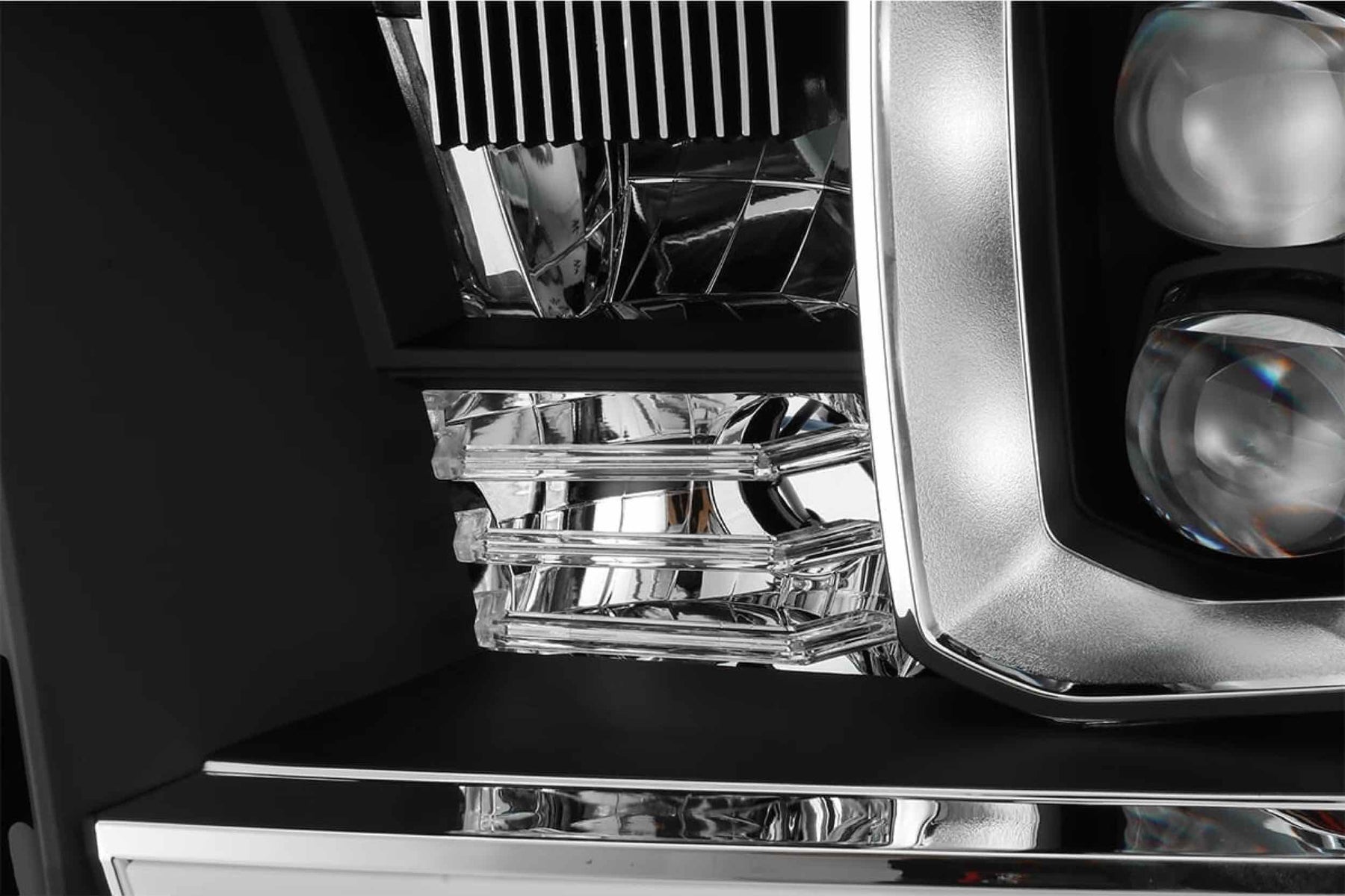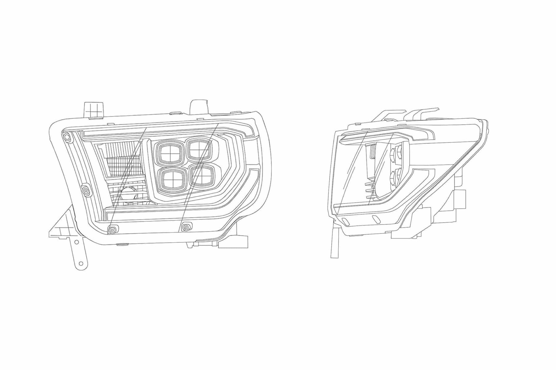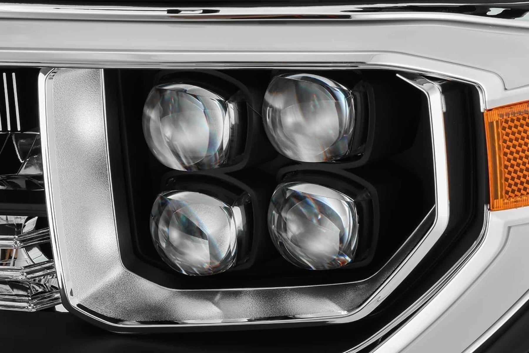 AlphaRex Is a relatively new brand in the automotive aftermarket industry. They've become known for building headlights that are unique in style, offer various color choices, and better than average construction quality. While (in our testing) they don't do as well as the slightly more expensive Morimoto XB LED headlights, they do offer good bang for the buck and certainly worth considering. If you're interested to see what else we've got in stock for your truck, use the buyer's guide on our website! AlphaRex Design Alpharex Nova Series Headlights for the Toyota Tundra use their signature 3D ice-cube projector lens system inside. Besides the horizontal NOVA projector row, They have also added a LED tube around the edge as DRL and sequential turn signal. The LED tube is not only used as switchback DRL and turn signal, it also has the activation light feature which is an animated lighting sequence when you unlock and lock your vehicle. These projector headlights have a quad projector design, with the outer 3 projector as low beam, and inner projector as high beam. Ice Cube Projector Technology AlphaRex integrated their patented Ice Cube 3D LED Projectors that are powered by Osram Black Flat LED Chips. The jewel eye projectors look great inside of the Toyota Tundra Nova Series Headlights. The projection cut-off line is perfect for American LHD regulation. Features: The AlphaRex Toyota Tundra Nova-series projector headlights come with switchback DRL, sequential signal light, and the signature activation light feature, which is a sequential light show when you unlock your car. Housing: The Toyota Tundra Nova-series projector headlights are offered with either a chrome, matte black, or shiny midnight black housing. The chrome housing gives your truck a stock housing look and match your truck if you have a lot of chrome accessories. On the other hand, the black housing gives your truck a sporty look and easily match with any color truck and front grill. Above all, the gloss/ jet black housing and mid-night black housing (all black housing with glossy finish) are their specially designed versions that has a combination of glossy looks mixed with the black paint, and it will give your truck a sporty and luxury look at the same time. Lenses: The AlphaRex headlight lenses are made of polycarbonate plastic. They also apply a layer of anti-fog agent on the headlights lens; thus, it allows better light output in extreme weather. In addition, they also apply another coating to protect the lens against yellowing and oxidation. SAE/DOT Compliance: Our Toyota Tundra Nova-series projector headlights are compliant with SAE and DOT FMVSS108 regulations. Moreover, all our products are certified to ISO-9000, ISO-9001 and ISO-9002. Most importantly, we inspect every detail of the lights to make sure we are satisfied and so are our customers. Installation: Our projector headlights are plug-n-play direct replacement for your truck. You can download the installation guide from the link in the listing above. Because these headlights have a DRL feature, you will need to apply the DRL module included in the package. No modification is required for installing these headlights; thus, our headlights are easily removable when you need to return or sell your truck and it will not void your factory warranty.