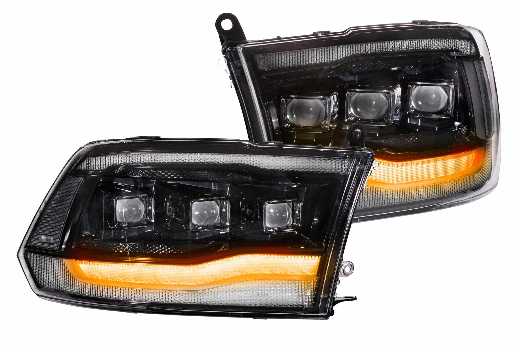 Your Ram: Needs the new Carbide LED headlights from GTR Lighting. With their OEM style LED Daytime Running Light, The sequential LED turn signal, and the triple high-output LED projectors: They are clean enough to be considered original-equipment lights on the most modern Ram, but sharp enough in the performance and looks department to justify the cost in the name of setting your truck apart. Style: The aggressive triple projector design is what makes the GTR Carbide headlights stand out. The LED Daytime Running Lights are plenty bright in both the day and night time setting, and illuminates in a perfectly smooth, white light with no visible hot spots, unlike entry-level options from the aftermarket. There is no better way to modernize the front-end of your 2009-2018 Dodge Ram than with a set of the Carbide headlights! High Output: GTR Lighting is renowned for producing the best and brightest plug n play LED upgrades in the automotive aftermarket, and the new series of Carbide LED headlights are no different! The GTR Ram classic headlights come equipped with a powerful set of dedicated low and high beam LED projector optics that produce a wide, bright, and well distributed beam pattern for more comfort and visibility in both low and high beam modes. There are no replaceable bulbs to deal with (or worry about!) here. LED Turn Signals: The optics inside the DRL do double-duty as a switchback Amber LED Turn signal, that runs sequentially from one side to the other as the turn signal blinks. Like the Daytime Running Light, it is plenty bright to ensure traffic knows where you are going. This is must-have for any top-of-the-line LED headlight today! Housing: GTR Lighting spared no detail in the design of the new Carbide headlights. The interior trim is has a combination of textures to add depth. To keep the headlights looking like-new forever, the polycarbonate lenses have been treated with a UV-resistant coating. Easy Installation: The GTR Lighting LED headlights have been engineered to be completely plug n play in place of the original equipment Ram headlights, and will work on all trucks regardless of their stock lights (reflector, projector, etc).