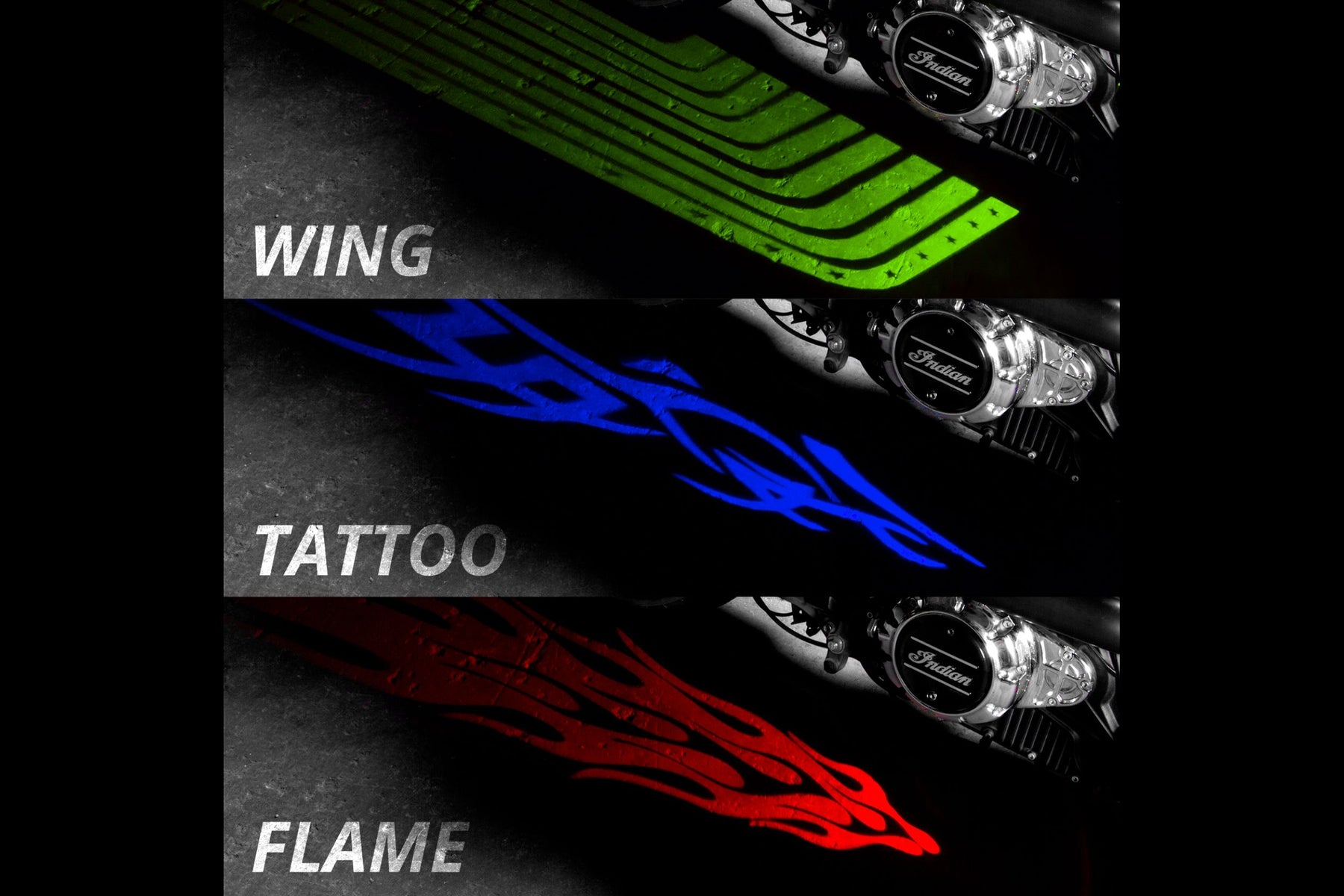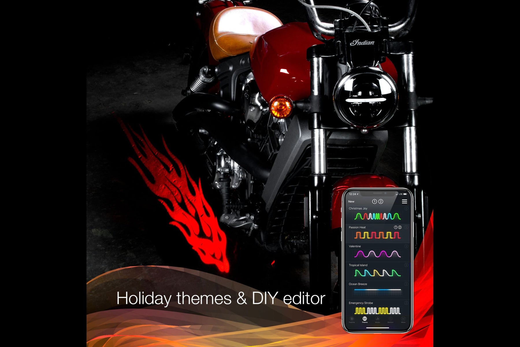 Projected light: Extending beyond the outer edge of your car's footprint, app-controlled RGB projector lights are now available from XKGlow! Your choice of Flames, Tattoos, or Angel Wings patterns with the app-controlled color means you can get exactly the look you're after! From XKGlow: Introducing a new twist on underglow; our all-new CurbFX Projectors! This unique product mounts to the pinch weld or frame rail of your vehicle and projects the unique graphics backward. Available in three killer designs to best suit your style; tattoos, flames, or wings. The Projectors come standard with our XKChrome Bluetooth Controllers for endless possibilities and as always, the left or right side graphic can also double as your amber turn signal too! Light up the street like never before with our new CurbFX Projectors! XKChrome Controllers: Often regarded as one of the best Bluetooth RGB Apps, XKGlow's XKChrome certainly has a wide variety of modes and functions to suite any taste. In addition to being able to dial in almost any color, the app includes the option to match a color based off of your phone's camera, 15 preset themes, a theme builder mode, turn signal override function, speed-related colors, music synchronization, and a sensor wire override. Wild!