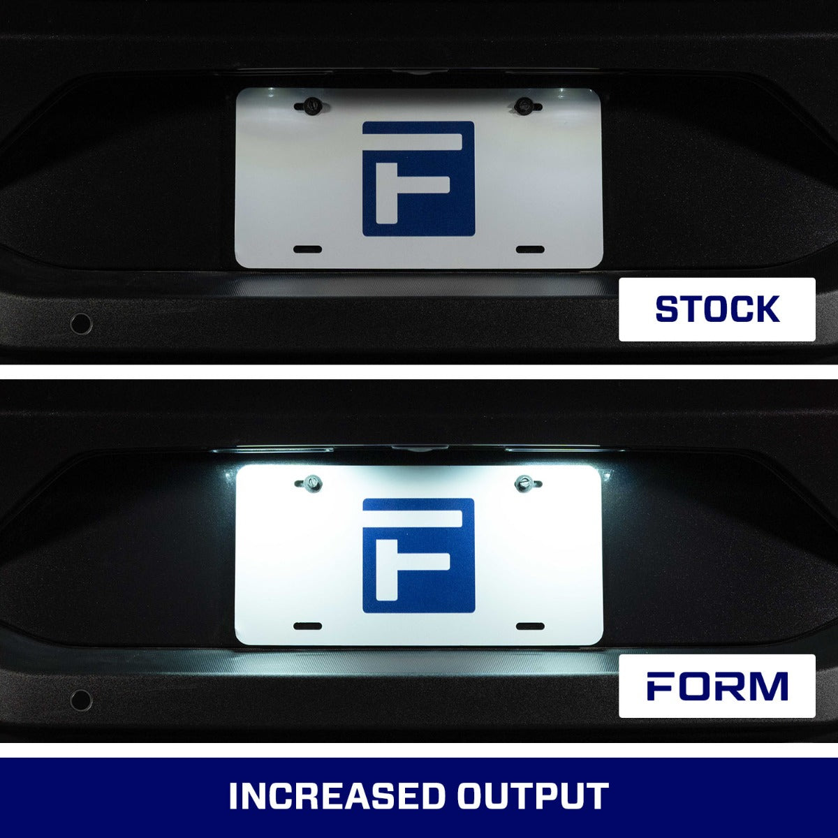 More Modern Appearance. On top of the output upgrade these lamps also provide an improvement in style. Dim LEDs are a thing of the past Form Lighting's new License Plate Lights are here to give your Mustang the crisp modern look it deserves.
