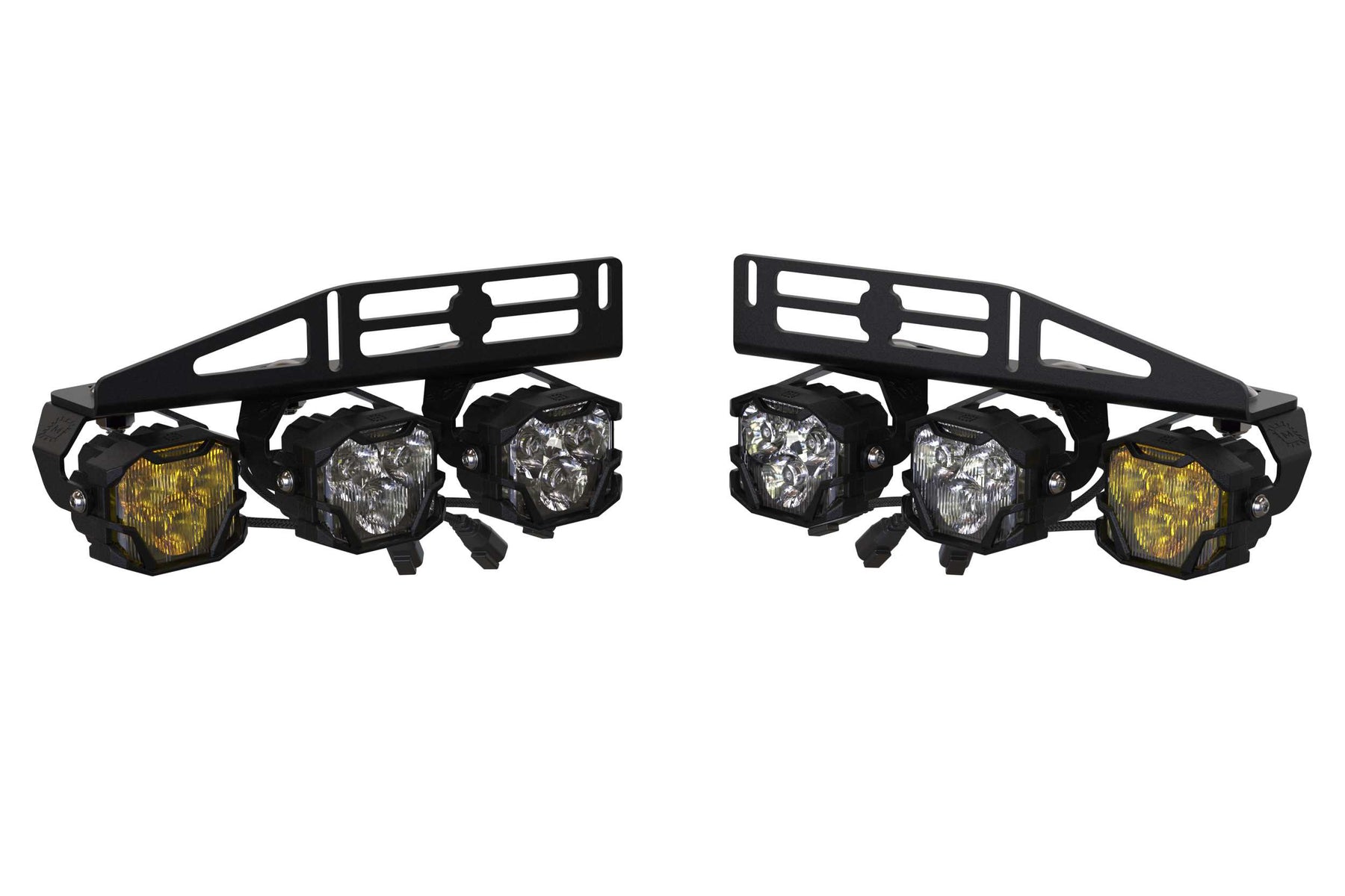 Triple Threat: The Morimoto 4Banger NCS Wide Beam is designed to comply with the latest SAE F3 regulation for a street legal fog light. The Morimoto 4Banger HXB Wide Beam sets a new industry benchmark for intensity. The Morimoto 4Banger NCS spot and combo will illuminate medium-to-long range distances unlike anything else in the aftermarket thanks to the laser boost. But what's better than a collection of the best performing beam patterns in the industry? The ability to combine three of them on the front end of your 2016-2021 Ford Raptor, of course! Engineered Solution: Thanks to the smaller than usual footprint of the 4Banger, we now have a powerful LED Pod light upgrade for the Raptor that fits properly and looks right. Other kits that are based on bigger LED pods stick out like a sore thumb. Not here. Morimoto engineers spent many hours hands-on in the garage during development of the 4Banger brackets alone. Repeated rounds of design, prototyping, and test fitting have spawned the most refined set of bumper brackets that a Raptor owner could ask for. Easy Setup: Everything is designed to bolt-on and plug-n-play. No modifications are required to your Ford Raptor or its wiring to install the 4Banger off-road lights in your bumper. Each kit includes all the necessary hardware and high-quality wiring harnesses to mount three LED pods and provide them with reliable power using an in-cabin switch.Fully Adjustable: These things are powerful, and while their wide beam pattern is perfect for use as a fog light, power is nothing without control. In addition to the side to side adjustability, the brackets also have +/- 6 degrees of vertical range so that you can dial in the aim and ensure every ounce of intensity ends up exactly where you want it. All Weather: The white-output version is ideal for all-around visibility. For those who desire optimal output in rain, snow, or fog -- the Yellow-output version will slay in sour weather. For HXB Spot and Combo models, Morimoto has opted for Phosphor-Converted Yellow LEDs that produce yellow light at the origin, which is the most effective way to penetrate through particles in the air without compromising output (Filtering white light through a yellow lens achieves the look, but no actual performance benefit in poor weather). Street Legality: With a standard -4 degree aim, the beam pattern produced by both the NCS and HXB Wide Beam models has been verified compliant with the latest SAE F regulation for use as a street-legal fog light. You can view those test reports in the Compatibility section below.