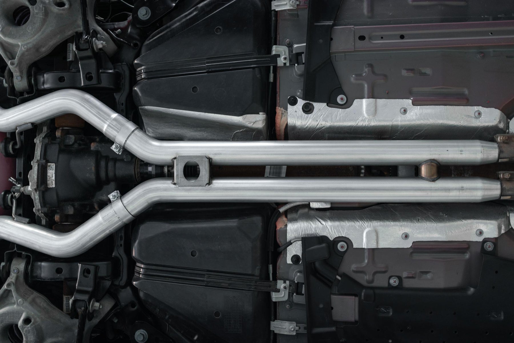 Black-Coated Aluminized Steel, 3 Inch Cat-Back Dual Split Rear Quad Outlet with Black Tips, Race Profile