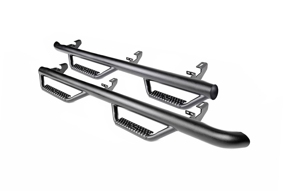 Our innovative design actually hides any exposed frame you see under the truck, offering extra protection for your rocker panels. Rough Country Nerf Steps are Made out of ultra-durable .084 Wall corrosion resistant tubing with a Zinc Base Coat and Black Finish for a sharp look that's ready to withstand the elements. Rough Country Steps include a Lifetime Replacement Warranty!